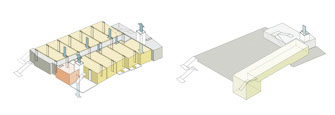 The proposal addresses both these aspects by shifting the main lobby of the hotel onto the second floor within a prominent double height enclosure on the street corner. The access to this lobby in the sky is via a set of elevators from a small bell-hop facility on the ground floor. This move immediately marks this important corner and bypasses the limited access.
