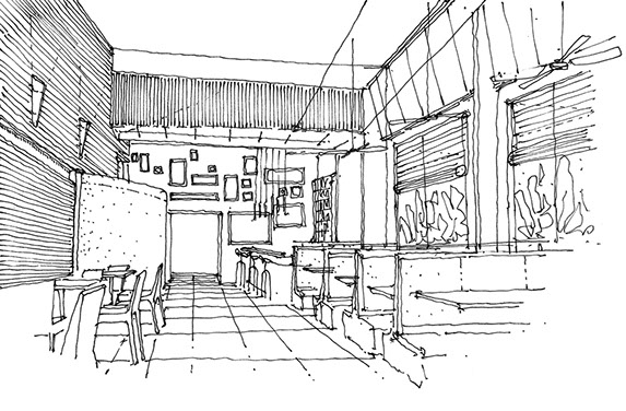 In many ways this project is the result of a close collaboration with the client and a clear idea for what it should be right from the start. The palette of materials include sleeper wood & brick flooring, cement finish walls, refractory brick cladding and exposed metal work (mezzanine and spiral stair).
