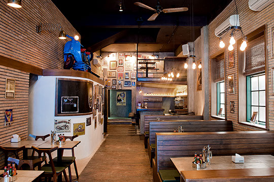 Monkey Bar is a 3,000 sft. Gastro Pub. There are two primary levels and a small mezzanine. The brief from the client was for an informal, cozy place with eclectic furniture, found objects, and a non-chic interior. All the furniture was designed by the firm and most of the accessories (lights, picture frames, art, etc.) were sourced by the client.