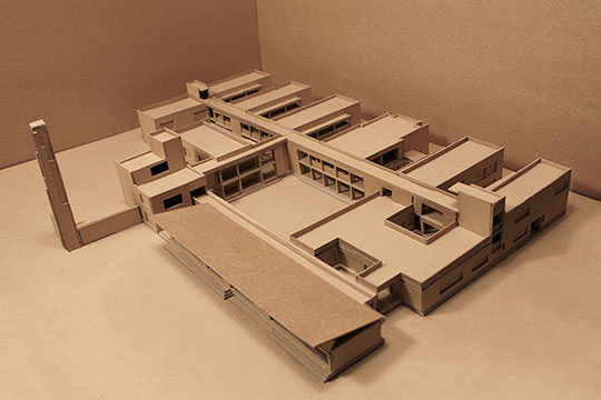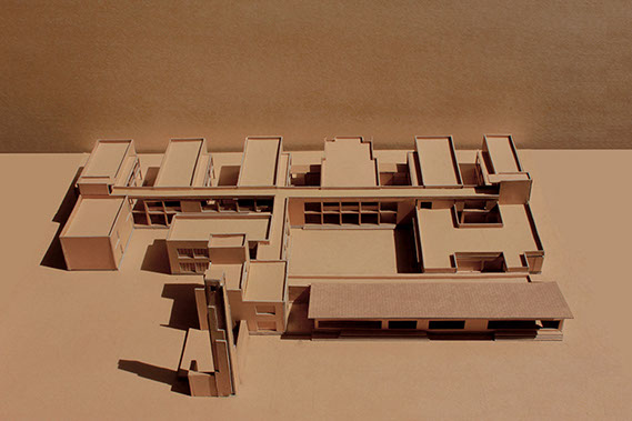 Situated in a dense Tamarind orchard, the plan derives its structure from this planting grid. Built on a tight budget the orgnisation of structure and fenestration give the building its proportion, rhythm and clarity.