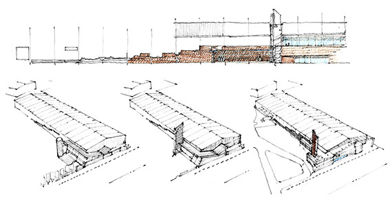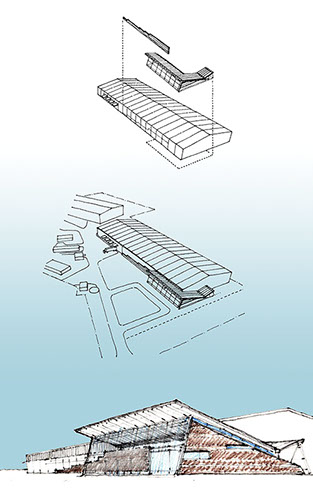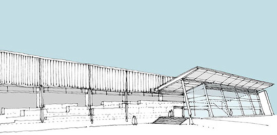 Situated on the Bangalore-Chennai highway the Visitors Centre, attached to the north east corner of the new warehouse makes a strong impression exposing both a large stone clad feature wall and a glass facade revealing an illuminated internal volume to the highway.